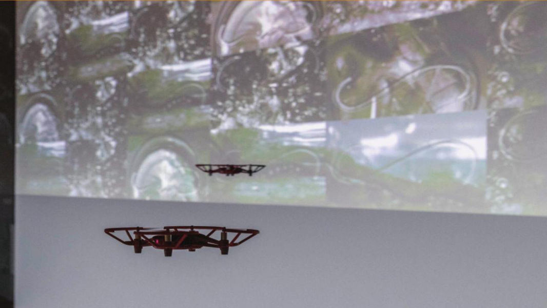 The AI’s translation and transition of human emotions into data forms for drones and the drones’ flight along these trajectories show that nonhumans can understand, respect, and heal human emotions. This process symbolically demonstrates the idea of a “forest of nonhumans” realized through the phase transition of material with variability in the myriad of mutual effect and reciprocity relationships created by humans and nonhuman objects like AI and drones.